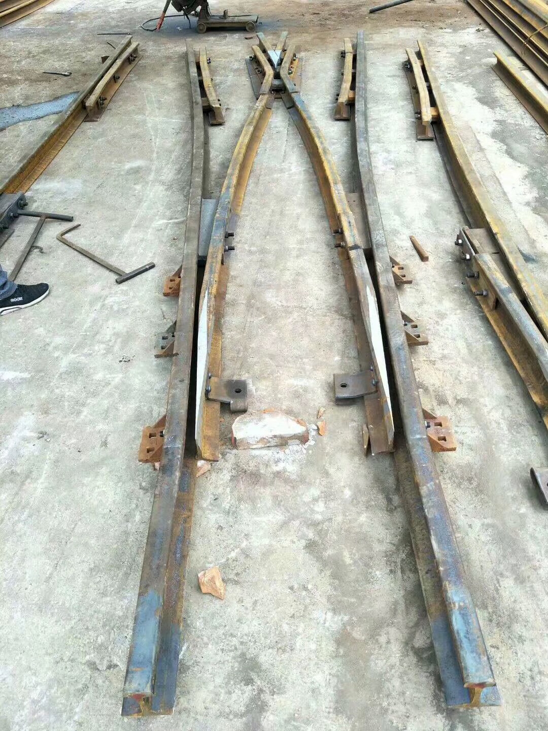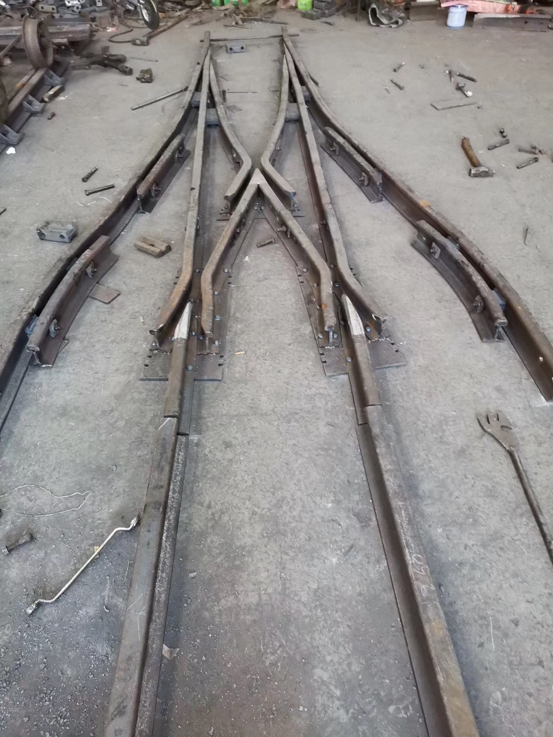 在上世紀(jì)六十年代林州人民(原林縣),自力更生,艱苦奮斗,在非常艱難困苦的歲月里,修造了舉世聞名的“人造天河”紅旗渠,被譽(yù)為世界八大奇跡之一,在新世紀(jì)的今天,林州兒女踏著前輩的足跡,發(fā)揚(yáng)紅旗精神,繼續(xù)前進(jìn),為振興經(jīng)濟(jì)中原崛起,在原來(lái)的基礎(chǔ)上不斷創(chuàng)新發(fā)展,使企業(yè)躍上了新的臺(tái)階。 我公司為上新產(chǎn)品整鑄道岔,斥巨資擴(kuò)建廠房,引進(jìn)設(shè)備,聘請(qǐng)人才,特聘(原煤炭部北京設(shè)計(jì)研究院)道岔專家胡工為我公司技術(shù)總監(jiān),特聘鐵道部寶雞橋梁廠鑄造專家王工為質(zhì)檢總監(jiān),經(jīng)過(guò)多方努力,無(wú)數(shù)次的試驗(yàn),整鑄道岔于2003年終于試制成功,并已批量生產(chǎn)投放市場(chǎng),受到了各用戶的一致好評(píng)和青睞。 拼裝道岔是用螺拴和鉚釘連接在一塊的,使用后經(jīng)礦車往來(lái)的軋壓和雨水的腐蝕,很容易出現(xiàn)螺帽脫落,鉚釘松動(dòng),造成機(jī)芯解體或損壞,而影響了正常的生產(chǎn)運(yùn)輸和造成重大安全隱患,而整鑄道岔機(jī)芯是高溫一次澆鑄成型,經(jīng)粹火,正火等多道工藝處理,其金相組織結(jié)構(gòu)嚴(yán)密,抗拉抗沖擊性能極高。它是由多種元素組成的低合金剛,耐磨系數(shù)是普通拼裝機(jī)芯的4倍,從而大大降低了使用單位的生產(chǎn)成本,減少了更換、保修、保養(yǎng)等麻煩,整鑄道岔的優(yōu)點(diǎn)再者就是承受能力大,運(yùn)行速度快,使礦進(jìn)的運(yùn)輸量大幅度的提升、整鑄道岔的安全性能很好,因?yàn)樗且淮涡詽茶T成型的,在設(shè)計(jì)和生產(chǎn)過(guò)程咽喉部位已加高和加厚(俗稱道岔的有害空間),排除了車輪通過(guò)此段掉道的弊端,因此使礦車的速度大幅度提高,為使用單位多創(chuàng)了良好的經(jīng)濟(jì)利益。